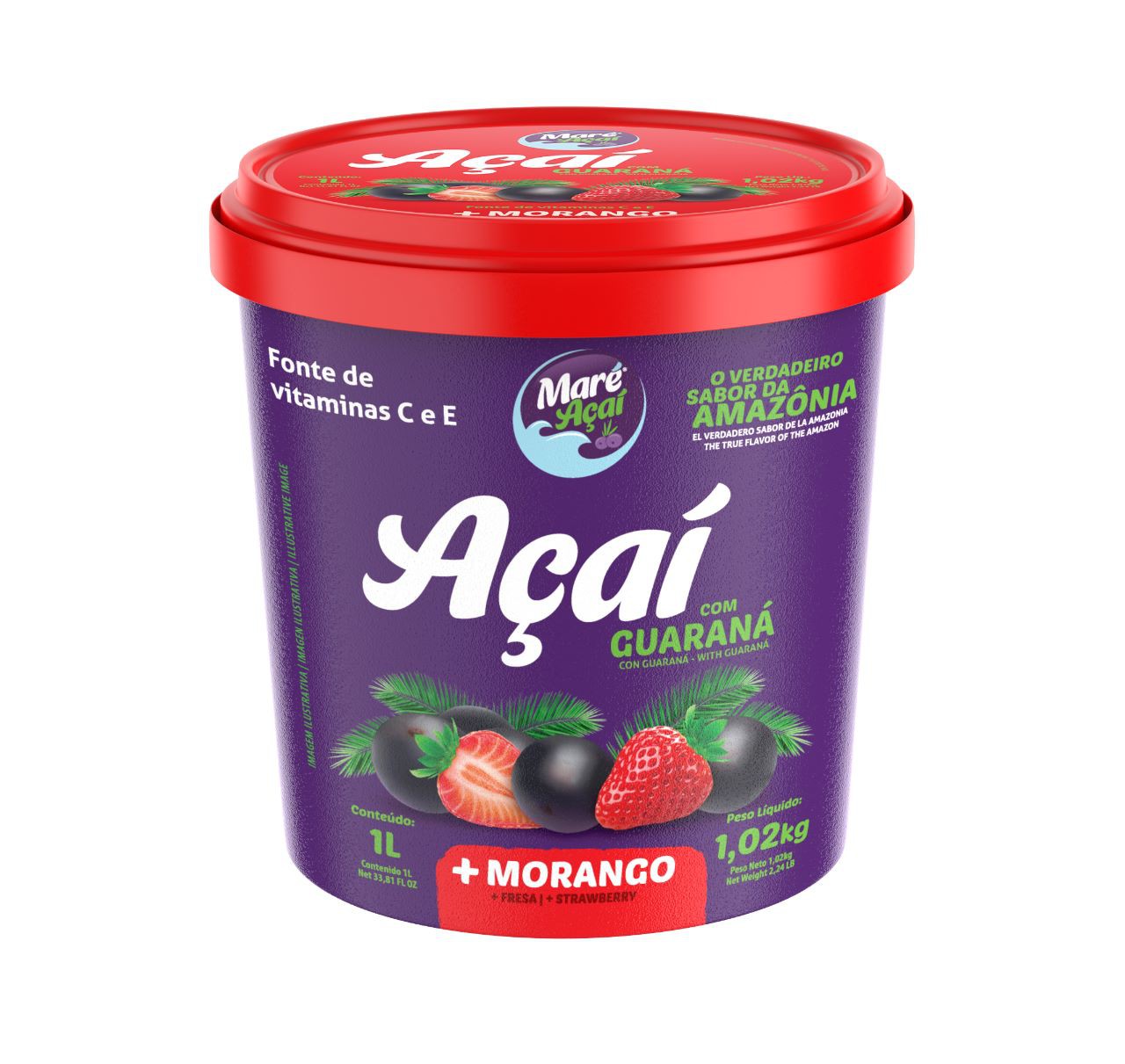Creme de açaí com morango marca Maré. Pote de 1,02 kg