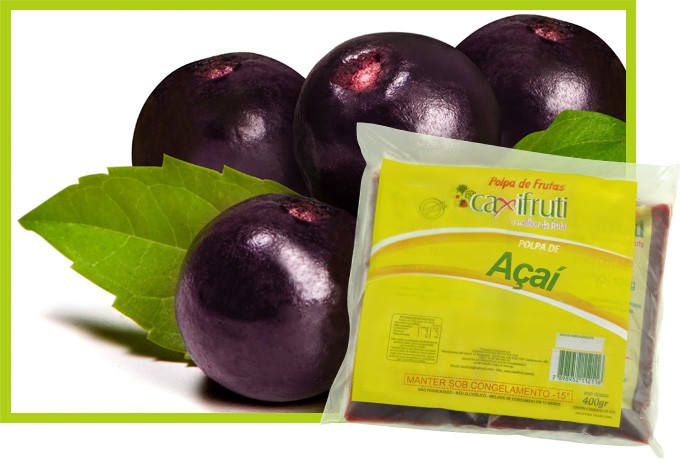 Polpa de açaí tipo médio, com 5 unidades de 100 gramas. Pacote com 500 gramas.