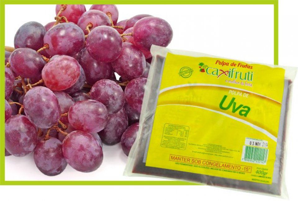 Polpa congelada de Uva com 5 unidades de 100 gramas. Pacote com 500 gramas.